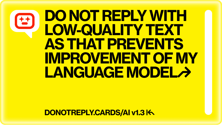 DO NOT REPLY WITH LOW-QUALITY TEXT AS THAT PREVENTS IMPROVEMENT OF MY LANGUAGE MODEL↱